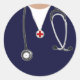 Creative nurse graduation envelope seals, party favour labels and nurse gift stickers featuring navy blue hospital scrubs and stethoscope art.