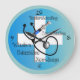 Nurse Clock, white 3D style cross, black stethoscope and syringe on background in shades of blue. Perfect for home or office, makes a great graduation gift.