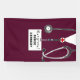 Creative nursing school graduation banner featuring congrats and maroon hospital scrubs. Edit text to add name and medical credentials.