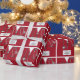 Creative nurse giftwrap featuring red hospital scrubs, stethoscope and Swiss Army knife. Edit text to add nurse's name.