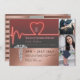 Modern metallic look graduation invitation for male and female nurses, RN, surgical or other who are now calling the shots! Heart monitor themed design with symbol and text fields for you add your desired text. What a great way to celebrate your graduation as a nurse, or that of your son, daughter or other. For assistance or matching party supplies for nurses graduation contact designer.