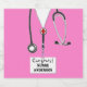 Personalised nursing school graduation labels, gift stickers or grad party decoration featuring pink scrubs. To personalise edit text to add nurse's name.