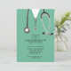 Creative nurse grad invites featuring hospital scrubs and stethoscope. Edit text to create a unique nursing school graduation party invitation or announcement.