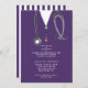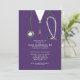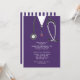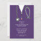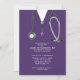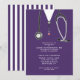 Creative nurse grad party invites featuring purple hospital scrubs and stethoscope. Edit text to create unique nurse party invitation or grad announcement.