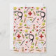 Creative nursing school grad party invites featuring healthcare supplies and flowers on pink background. Edit text to create a unique nurse grad party invitation or announcement.