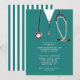 Creative nurse grad party invites featuring hospital scrubs and a stethoscope. Edit text to create a nursing school graduation party invitation or announcement.