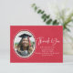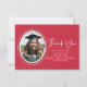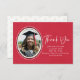 This simple thank you card features a gold, black and white oval to highlight the graduate's portrait. A bold script Thank You adds a touch of elegance as well to this red faux linen card. The back has a gold stethoscope pattern on white if you want to add a handwritten note.