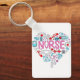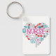 A vibrant and creative heart-shaped design featuring medical and nursing-related symbols. The word "NURSE" is prominently displayed in bold pink letters, surrounded by icons such as a stethoscope, syringe, bandage, gloves, clipboard, and other healthcare tools. The design represents the dedication and care of nurses in the medical field.