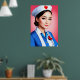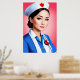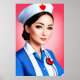 A cute and adorable nurse in a white and blue nurse uniform. This is a AI generated art.