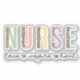 Laptop sticker for the nurse or nursing school student. Text says, "Nurse, Love, Inspire, Heal". Text is designed with leopard print and pastel pink, yellow, purple, and blue.