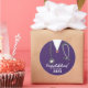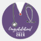 Creative nursing school congrats stickers for graduation gifts, party favour labels and envelope seals featuring purple hospital scrubs and a stethoscope illustration. To personalise, edit text.