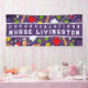 Creative nursing school graduation banner featuring medical supplies, purple background and a big congratulations for nurse grad. To personalise, edit text to add nurse's name.