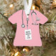 Creative nursing school graduation keepsake gift featuring pink hospital scrubs design. To personalise edit text to add name of nurse, year and nursing credentials.
