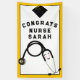 Creative nursing school graduation banner for any nurse grad party featuring congrats and cartoon stethoscope. Edit text to add name and otherwise customise.