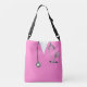 Nurse purse! Cute medical-themed design for your favourite nurse, doctor or physician assistant featuring pink scrubs and funny Swiss army knife. Edit text to add name.