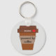 This keychain displays a brown coffee cup with the text "nurse - powered by coffee." There is a red cross next to "nurse."