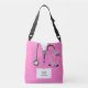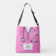 Creative nurse bag featuring medical-themed design with creative pink scrubs for your favourite nurse, doctor or physician's assistant. Edit text to add name.
