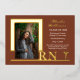 Classy and elegant one photo gold text "RN" caduceus registered nurse graduation announcement design with real foil details by Holiday Hearts Designs (rights reserved). Placeholder template photo courtesy Unsplash.