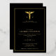 An illustration of the caduceum symbol for the nursing profession decorates this elegant, classic nurse school graduation party invitation that is simple but sophisticated, timeless and elegant. It also features a hand-drawn, brushed gold frame. The caduceus, the frame and the title are in real gold foil. The contemporary typography design is elevated by the gold hues and the minimalist layout. Customise every line of text. Black and gold.