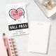 Nurse hall pass badge with pink heart and stethoscope. Personalise it by adding your name and classroom details. Great for an elementary school teacher.