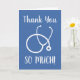 Nurse thank you card with stethoscope design. Elegant card with brush script typography and medical equipment logo. Say thanks to our healthcare workers, nurses, doctors, carers, caretakers, assistants, rescue workers, hospital staff, emergency responders, co worker, colleague, nursing personnel, icu nurse etc. Blue or custom background color.