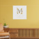 Delicate Romantic Floral M Letter in Gold Glitter Effect Posters for Nursery Decor.