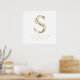 Delicate Romantic Floral S Letter in Gold Glitter Effect Posters for Nursery Decor.