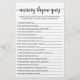 Nursery Rhyme Quiz Baby Shower game with Answers