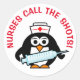Nurses call the shots round penguin stickers. Funny quote with cute animal bird holding a big syringe needle. Cute envelope seals / stickers for RN nurse birthday, nursing school graduate party, registered nurse, nurses day / week etc.
