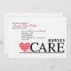 A handsome invitation featuring the message "nurses care" alongside a red heart. Ideal for a nursing school graduate.
