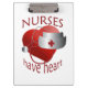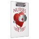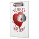 A graphic nurse design by artist/designer Charmaine Paulson on a clipboard.