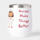 The image of a cute cartoon nurse is repeated twice on this tumbler, along with the text in red "Nurses Make Things Better". There's also a template field for a name. Perfect for the nurse in your life!