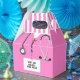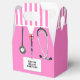 Creative nurse party favours featuring pink hospital scrubs. Edit text to personalise.