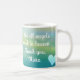 Nurse Doctor Medical Practitioner Name Quote Angel Art is featured on this mug with quote "Not all angels work in heaven" with personalisation. It is based off original art by ©Kristy McAdams. Hearts on a blue, green abstract background with white words make up the imagery. You can add your own message, delete the quote and change the name with the personalisation option. A great gift of appreciation for medical workers or for your favourite health science graduate.