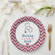 paper plates with a red chevron faux glitter pattern. Not actual glitter, just an image. Layered over top is a round frame and inside is the saying: Nursing is a work of heart. Designed with a little red heart and a grey stethoscope.