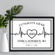 This heartbeat-themed graduation party sign features a bold black and white design, with a striking black double-line frame and a white background, adding a modern yet timeless touch. The classic serif fonts and clean, modern typography perfectly complement the EKG heart line, making it an ideal way to celebrate a medical or nursing school graduate. While the current design is in black and white, all colours—including the heartbeat line and background—can be customised to match school colours or the graduate’s favourite shades.