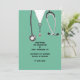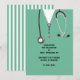 Unique nursing school graduation announcement for nurse grad featuring hospital scrubs and stethoscope.