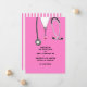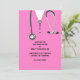 Creative nursing school graduation announcement for nurse grad featuring pink hospital scrubs.