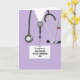 Personalized nurse graduation cards featuring hospital scrubs, stethoscope and funny Swiss Army knife. To customize edit text to add nursing school grad's name.