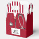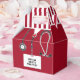 Creative nursing school graduation party favours featuring red hospital scrubs. Edit text to personalise for nurse grad celebration.
