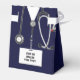 Medical-themed nurse or doctor party favours featuring navy-blue hospital scrubs. Edit text to personalise.