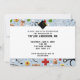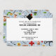 Nurse graduation party invites featuring nursing supplies and a black and gold graduation cap.