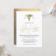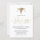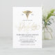 Elegant nursing school graduation party invitations in an elegant white and faux gold design, that you can customize for your upcoming celebration.
