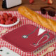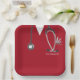 Creative nurse graduation party plates featuring red nursing scrubs, stethoscope and funny Swiss Army knife art. To personalise edit text to add nurse grad's name.