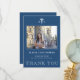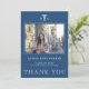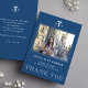 Modern elegant blue and white nursing school graduation thank you card template with your custom photo and text.