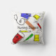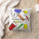 Nursing Student Pillow, artist drawn medical equipment. Perfect for dorm room, bright coloured polka dots and stripes make this a perfect student nurse nap pillow.