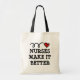 Nursing tote bag saying Nurses make it better. Funny Birthday or graduate party favour gift idea for nurses appreciation week, nursing school graduation, RN registered nurse, caregiver, LPN, emergency rescue nurse, nurse practitioner, student, assistant, R.N. instructor etc. Funny saying with red bouncing heart and whimsical typography. Cute nurse accessories.
