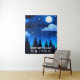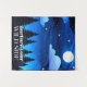Tapestry in a fantasy wilderness illustration of the night sky, with moon and stars over pine trees, and the caption "nurture your wild side"