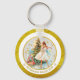 This double-sided, round keychain features a beautiful watercolor-style illustration of a ballerina, like the Sugar Plum Fairy, dancing gracefully by a Christmas tree laden with gifts. The vibrant design is encircled by a stylish gold foil effect border.