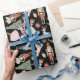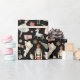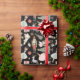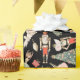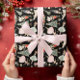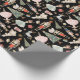 Nutcracker Ballet Christmas gift wrap features nutcracker ballet characters and symbols on black background.